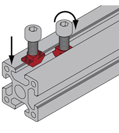 T型螺母是常用的工業鋁型材緊固連接配件之一,它的優點在于使用便捷,不需要預先置入型材槽內,可以直接將T型螺母放入固定點然后旋轉即可將T型螺母固定于型材槽內,而后利用相應規格的緊固螺栓即可實現鋁型材框架快速連接組裝; |